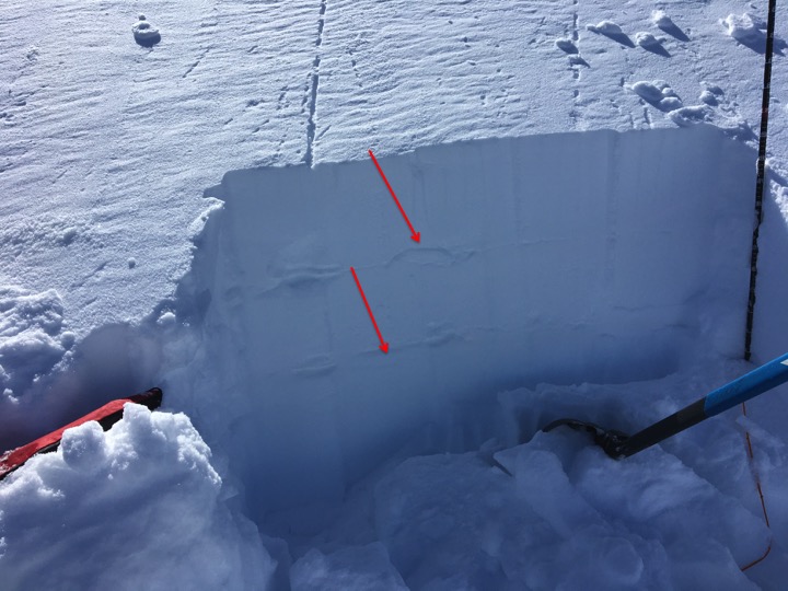 Ted stomped around Double Hill yesterday and has been tracking rime crusts that formed earlier in the month, and if they will be an issue going forward. These are easily found digging down a couple of feet. More on Ted's travels and insight found here.
