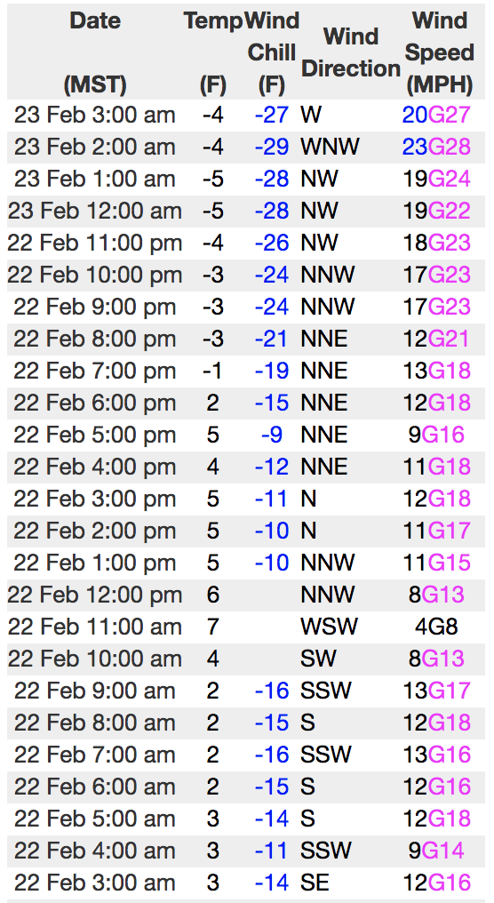 Above is hourly data from Trial Lake (9,945') and Windy Peak (10,662'). To view more regional weather stations click here.