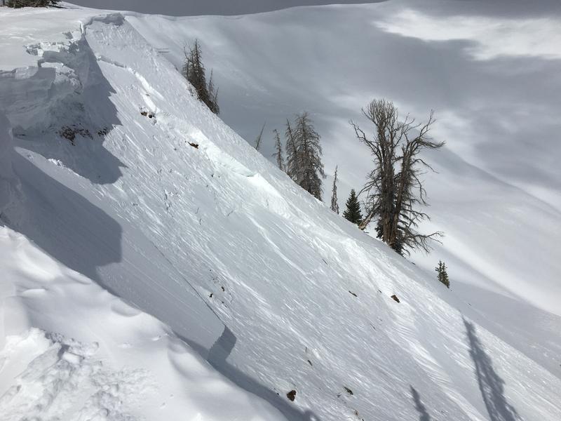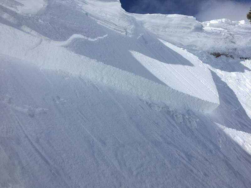 While more the exception than the rule, repeater slide paths and terrain that has remained shallow all season like steep, rocky slopes in the image above, continue producing pockety avalanches with a little nudging.