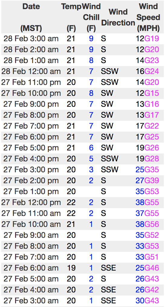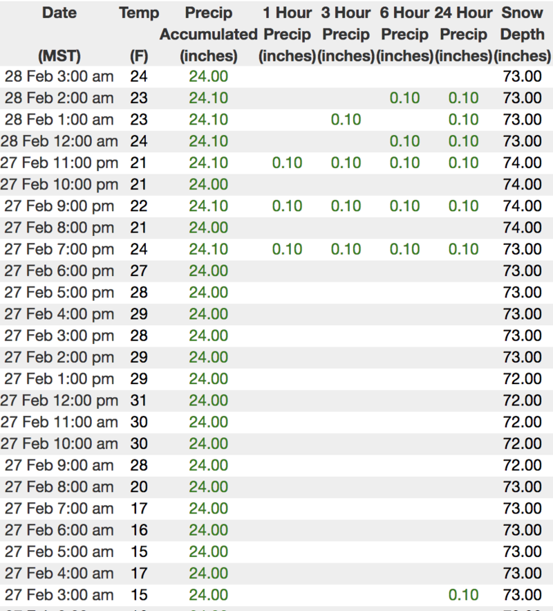 Above is hourly data from Trial Lake (9,945') and Windy Peak (10,662'). To view more regional weather stations click here.