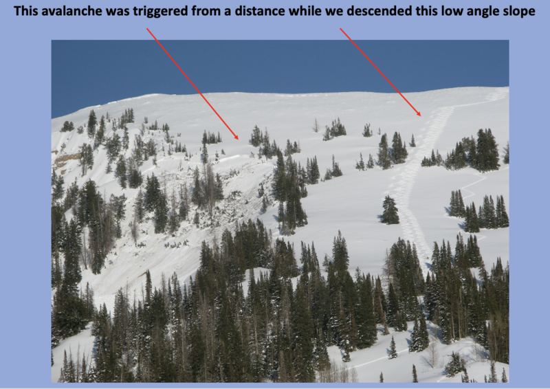 In addition, on Saturday my crew and I in upper Chalk Creek remotely triggered a large avalanche that broke to the ground, up to 10 feet deep and 350 feet wide. We triggered the nasty slide from a distance, a few football fields away, on an adjacent low angle slope.