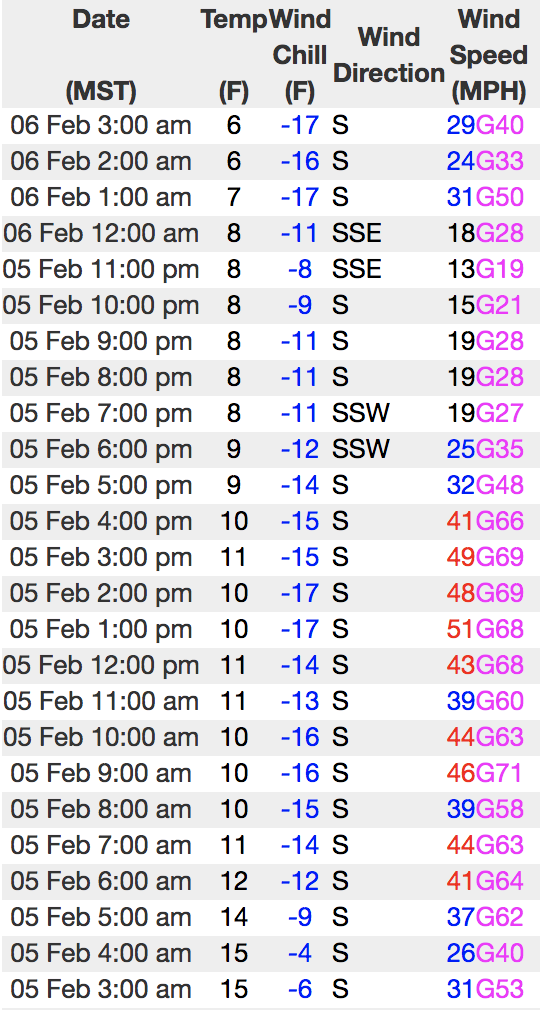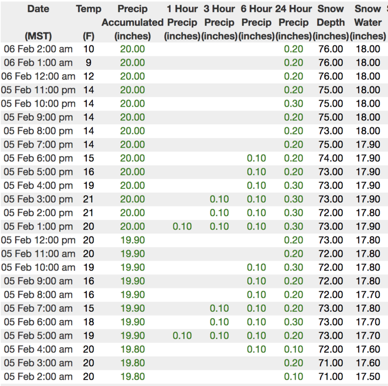 Above is hourly data from Trial Lake (9,945') and Windy Peak (10,662'). To view more regional weather stations click here.