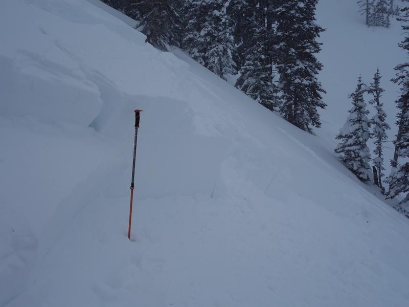 Images above are from Tuesday when Dave and Bill were in Upper Weber Canyon and triggered this large pocket from a distance that broke 2'-4' deep, failing on weak snow in the midpack and then breaking to the dirt.