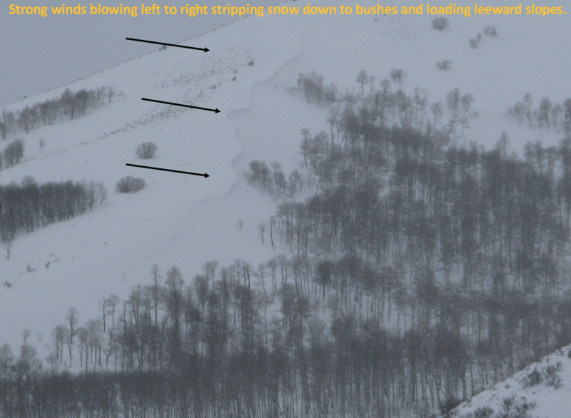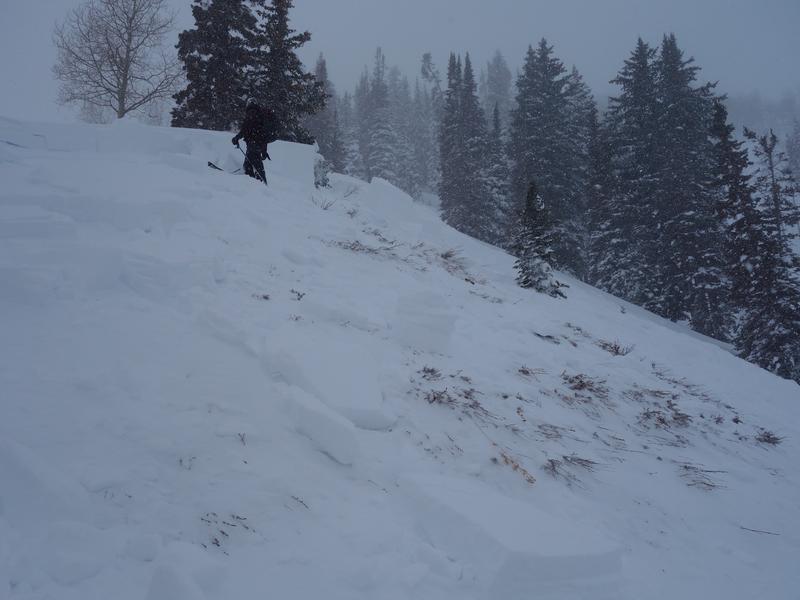 You know wind was invented in the Uintas and for days now, strong southerly winds have been nuking, penetrating all elevations, forming fresh drifts on just about every aspect of the compass. While most prevalent on the leeward side of mid and upper elevation ridges, drifting also occurred around terrain features like chutes, gullies, and sub-ridges. In addition, winds cranked even down low near the trailheads so expect to find fresh drifts in unusually low elevation terrain. In any case, today you'll want to look for and avoid any fat, rounded piece of snow, especially if it sounds hollow like a drum.
