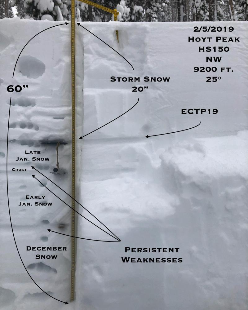 JG offers some sage advice.... "Patience is your best friend right now. Play the slope angle game and stay out of the wind zone. Low angle terrain out of the wind zone offers great riding right now even with the amount of new snow we've received." He goes on to say.... "If you're traveling in the wind zone on the north half of the compass the danger is high and you should expect avalanches." More on JG's travels in the Hoyt Peak area found here.