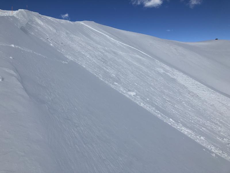 With a little coercing the avalanche in the image above initially started as a well connected, fresh wind drift, but then quickly broke into weak snow near the ground. This is a repeater, having already slid several times this year. Triggered on an east facing slope in the wind zone, this slide averaged 2' deep, was 250' wide, and ran 800' vertically... hard to trigger, but could easily ruin your day.