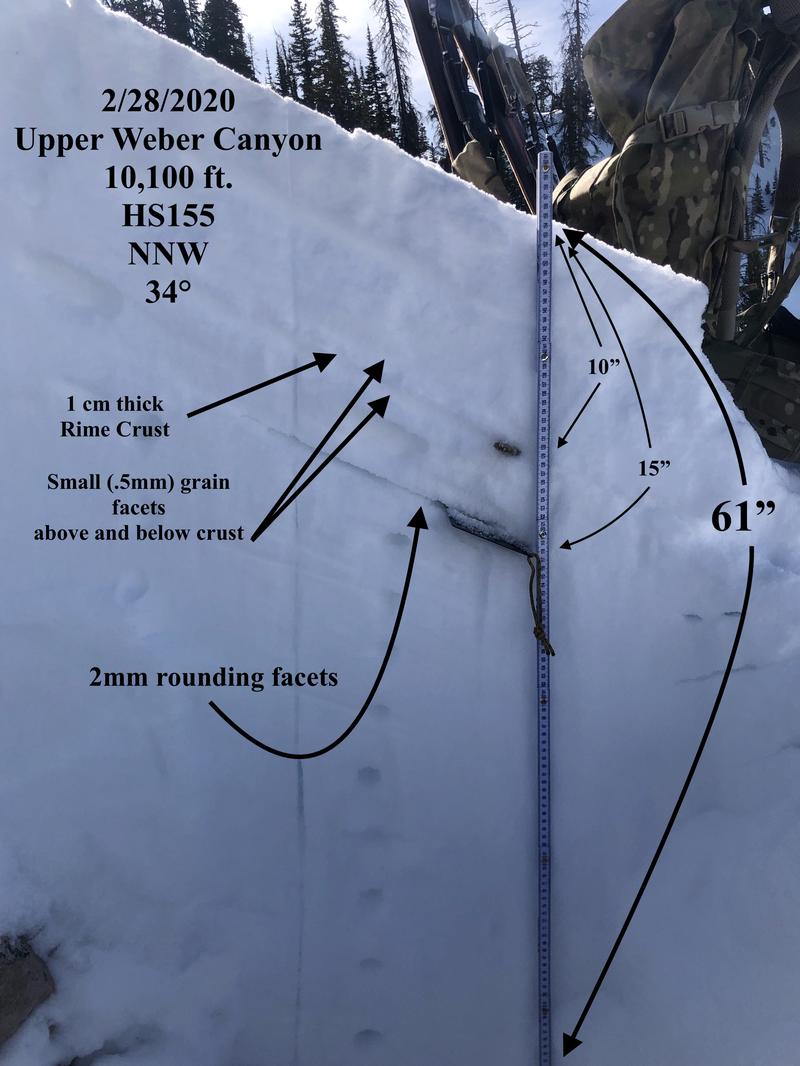 JG was in Upper Weber Canyon and posted one of his beautiful pit profiles. Common theme with all observations from avy pros across the range is we need to keep an eye on a crust/facet combo, now buried about a foot below the surface snow.