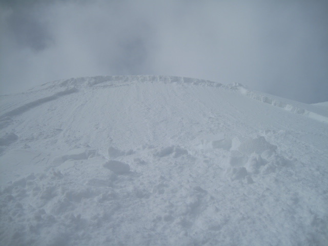 Cornices are ginormous and may break back further than you might expect. You definitely wanna give these large, unpredictable pieces of snow a wide berth and not ruin someones day below by inadvertently knocking a boxcar size piece of snow down on them