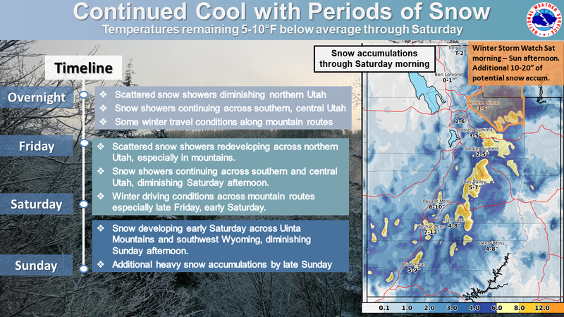 A cold winter storm delivers a good shot of snow for the region. Expect snow to begin stacking up in earnest during the day Saturday with storm totals  in the 4"-8" range for the North Slope and 10"-14" for the east side of the range.