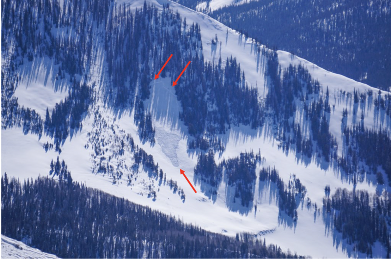 Guide, avy educator, and photographer extraordinaire, Shannon Finch spotted the mid slope avalanche in the image above in steep, shady terrain on Moffit Peak. Not particularly large, but definately big enough to let you know who's boss.