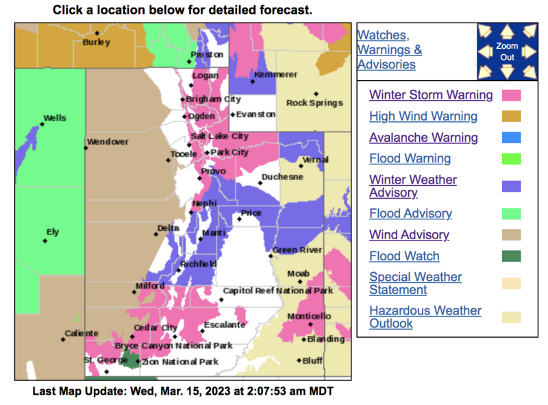 Our good friends at the Salt Lake NWS issued a Winter Storm Warning giving us a heads up on today's storm timing and duration.