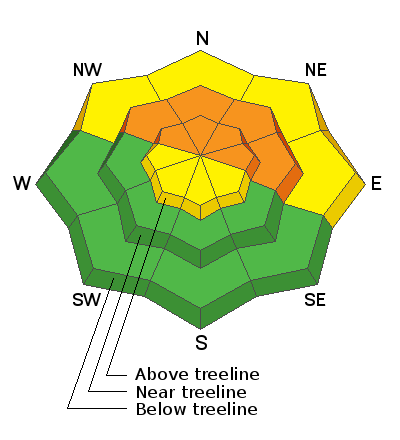 What's the exit strategy? There are two options. Ride southerly facing slopes that don't have this weak layer, but offer crusty snow and a much thinner snowpack. Terrain facing the north half of the compass offers a deeper snowpack and cold powder, but likely harbor dangerous PWL and are unstable. In those areas, simply ride slopes less than 30 degrees in steepness with no overhead hazard... and that means nothing steeper above you.