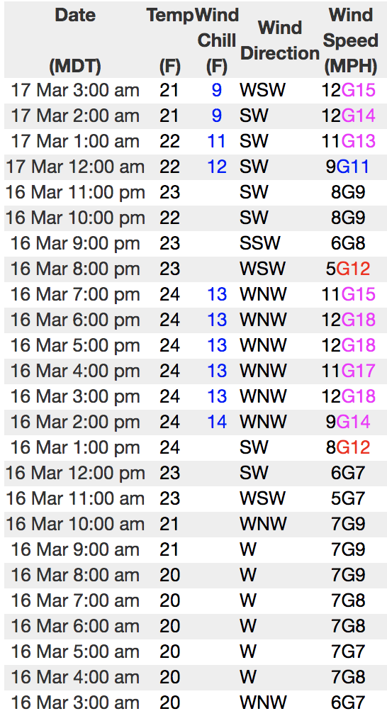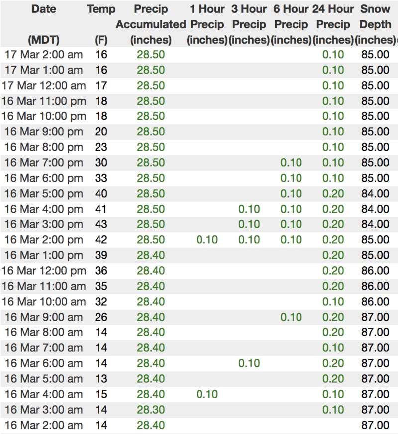 Above is hourly data from Trial Lake (9,945') and Windy Peak (10,662'). To view more regional weather stations click here.