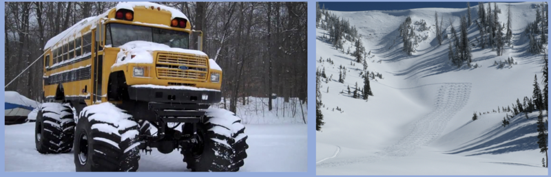 As for snow conditions- late last week we took the old school bus out for a few laps and found you've gotta be on your game this time of the year as the sun is high in the sky and it has baked all but the most northerly facing slopes in the alpine. But don't let your soft snow heart be troubled, there are large swaths of shallow, cold snow... just don't stray too far off aspect or you'll be dealing with varying degrees of breakable crust.