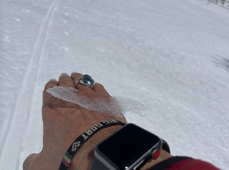 It's been a minute or two since we've experienced such a robust Uinta corn cycle... spring of 2013-2014 as a matter of fact. But, even more of a rarity is the uniform layer of firnspiegel that coats our mountains with a mirror-like sheen. Also known as glacial fire, firnspeigel is a thin ice crust formed on the snow surface on sunny, cold days. The sun's heat penetrates the surface snow layers and causes melt around the grains beneath the surface, but meltwater at the surface is refrozen forming a thin layer of ice. This requires just the right heat balance. It's not a layer that raises any red flags, rather it's an exotic surface, a blast to ski, and sounds like broken champagne glasses cascading down the slope with each turn. The jury is still out, but I suspect the reflectivity enhances my early spring tan :)