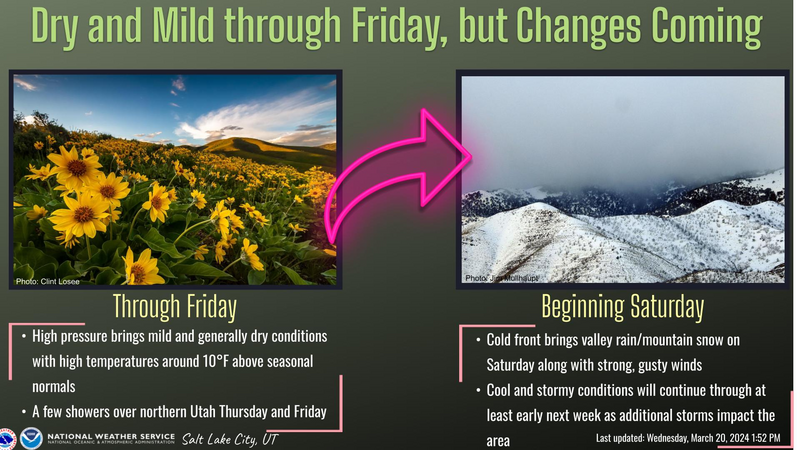 Our good friends at Salt Lake's National Weather Service layout a timeline for a weather change in the graphic above.