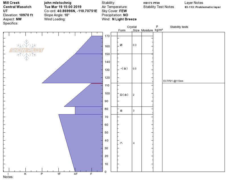 John Mletschnig was in the Millcreek zone Tuesday and found stunning views, and not surprising, a slightly weaker snowpack than in some of our deeper areas found in the central core of the range. More on John's travels found here.