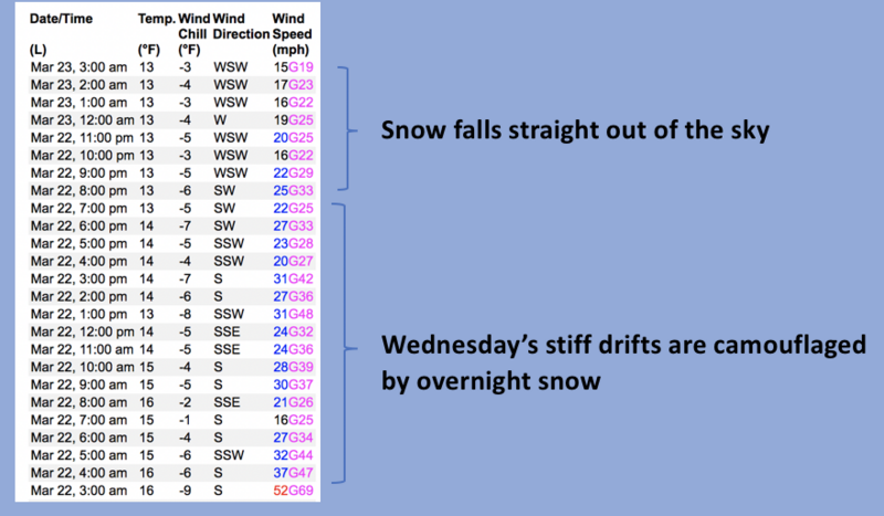 A 24 hour data dump from Windy Peak (10,662'), gives you solid beta of where recent winds loaded leeward terrain.