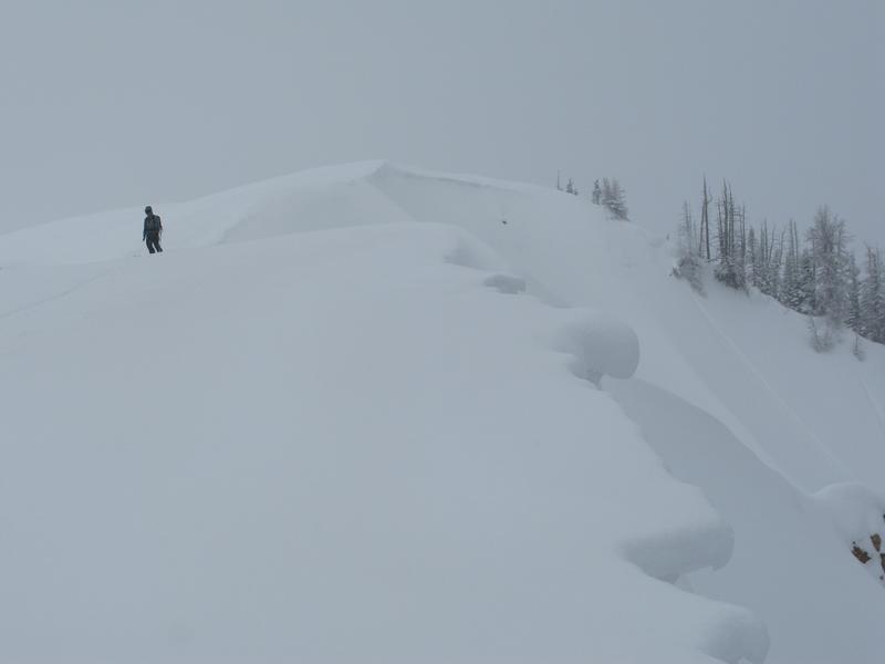 You know the drill.... follow the wind and you'll find the avalanche. The image above shows wind blew from the left to right. Stripping snow from the windward side of the ridge and loading it onto leeward slopes.