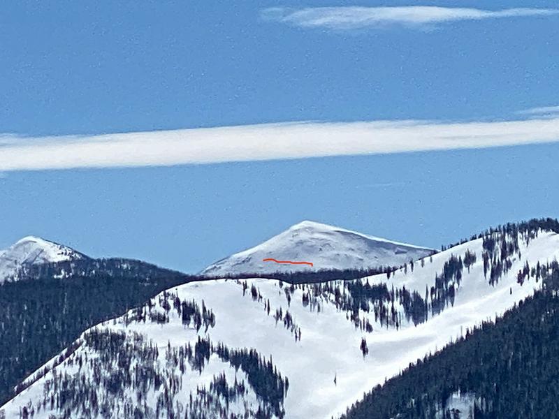 Avy-savvy, snow-pro... Bo (Torrey :) zoomed in on this image of Notch Mountain yesterday, where it appears a rather meaty piece of snow released in steep, rocky terrain.