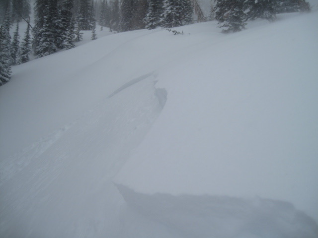 I think most of our new snow instabilities settled out overnight and the storm snow isn't going to be quite as reactive as it was yesterday. However, as you know, the Uinta's are a big place and I bet there's still a wind drift or two lurking out there that'll react to our additional weight. The good news is, this avalanche problem is small in scope and limited to steep, upper elevation, leeward slopes in the wind zone. So today you'll want to continue looking for and avoiding any fat, rounded piece of snow, especially if it sounds hollow like a drum. Easier yet... lose some elevation and you'll lose the problem.