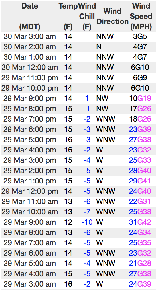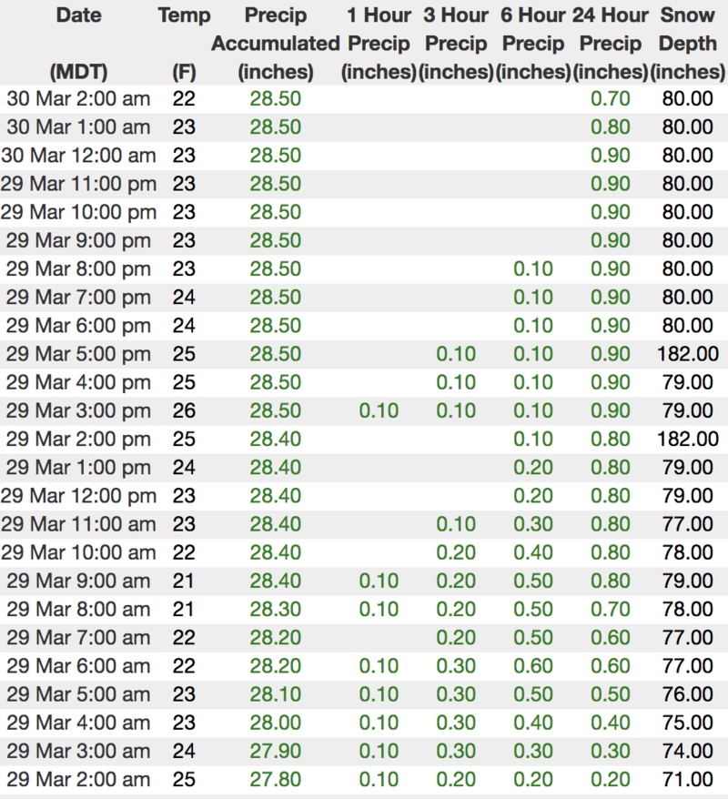 Above is hourly data from Chalk Creek (9,169')