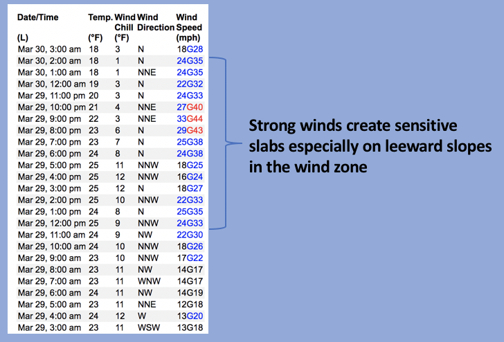 Above is a 24 hour data run from Windy Peak (10,662') illustrating recent wind trends.