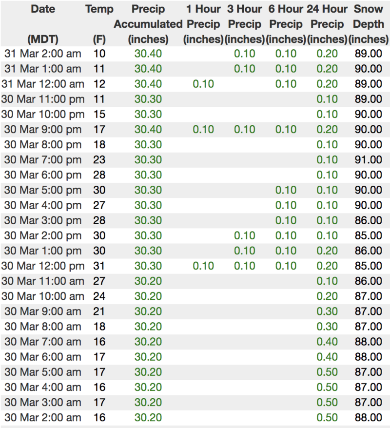 Our main man Ted Scroggin was near Gold Hill Friday and notes... "It was back to winter conditions with a nice foot and a half of new snow in the Gold Hill area. The snow throughout the day fell straight down with little wind, unless you were up along the ridge lines. A great sleeper of a storm. The new snow improved the riding conditions and it was best to stay on lower angle slopes where the old tracks and crusts were less of an issue." More on Ted's travels and insights are found here.