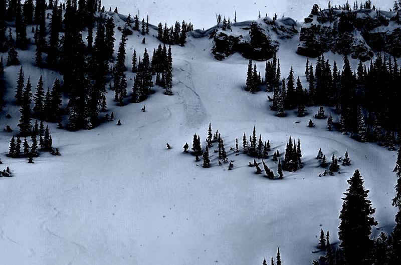 Lose some elevation and you lose much of the problem. Safer riding alternatives exist on lower angle, mid and lower elevation, wind sheltered slopes with no steep slopes above or adjacent to where you're riding. In terrain with these characteristics you'll find generally LOW avalanche danger and human triggered avalanches are UNLIKELY.