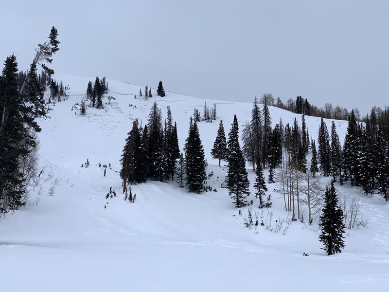 Surprisingly, winds have been unusually light and our forecast calls for more of the same today. However, don't let your guard down. Remember- the Uinta's are a big range and it never ceases to amaze me how even just a little bit of wind can find snow, channel it through terrain features, and form fresh drifts sensitive to our additional weight. While a few wind drifts may have formed along the leeward side of mid and upper elevation ridges, you might find a rogue drift or two around a terrain feature like a chute or gully wall. In any case, today you'll want to look for and avoid any fat, rounded piece of snow, especially if it sounds hollow like a drum.