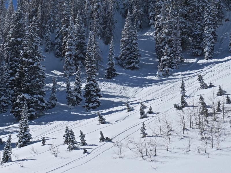 Lose some elevation and you lose much of the problem. Safer riding alternatives exist on lower angle, mid and lower elevation, wind sheltered slopes with no steep slopes above or adjacent to where you're riding. In terrain with these characteristics you'll find generally LOW avalanche danger and human triggered avalanches are UNLIKELY.