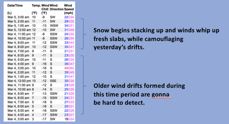 Strong winds and heavy snowfall deliver a one-two punch which changes the avy danger overnight-