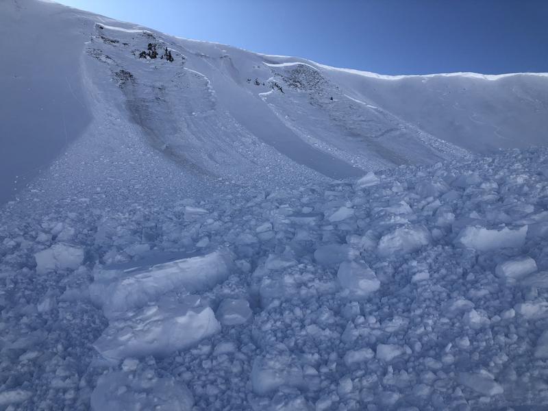 Triggered earlier in the week, this slide discovered by Michael Davis and Chad Bracklesberg in Soapstone Thursday, shows how avalanches triggered from a distance are still possible. Not particularly large, but it dumps into a gully feature or terrain trap below which heightens its consequences. Check out their great ob HERE.