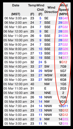 You can see in the image above a solid bump in the winds this morning from data collected at Windy Peak, 10,662'.