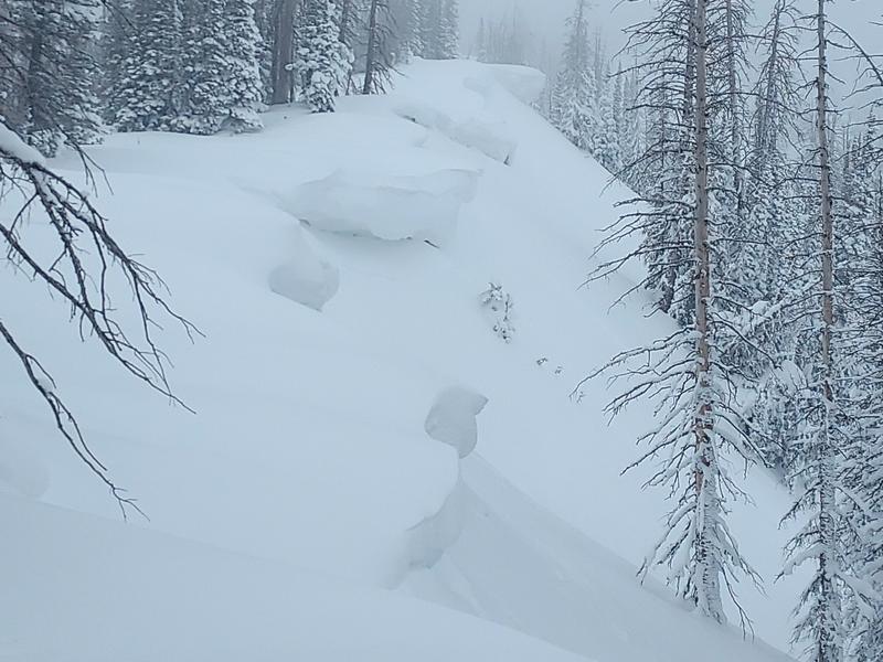 Days of wind blowing from the south, southwest, and west conspire with recent storm snow to whip up fresh cornice and shallow drifts sensitive to our additional weight. Yesterday, I continued finding fresh drifts predictably breaking in front of my skis... nothing too alarming. Once you lose the wind, you lose the problem. Sheltered terrain offers deep, chin-tickling snow.