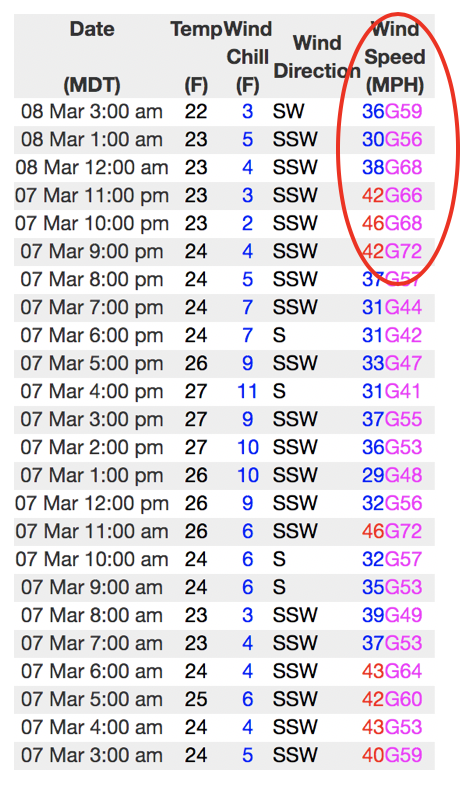 Follow the wind and you'll find the shallow wind slabs. Above is a 24 hour data grab from Lofty Lake Peak (11,186')
