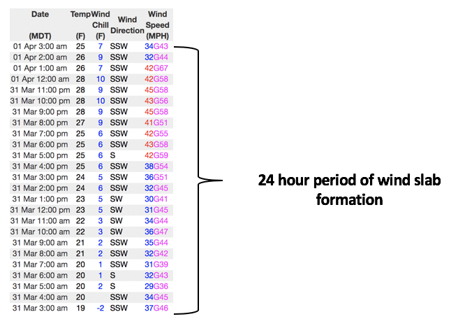 Above is a 24 hour data dump for Windy Peak (10,662') illustrating the punishing winds along the high peaks.