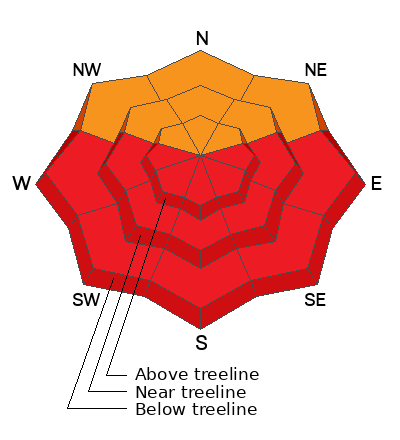 Northerly facing slopes have a CONSIDERABLE danger with less heating from direct sunshine.