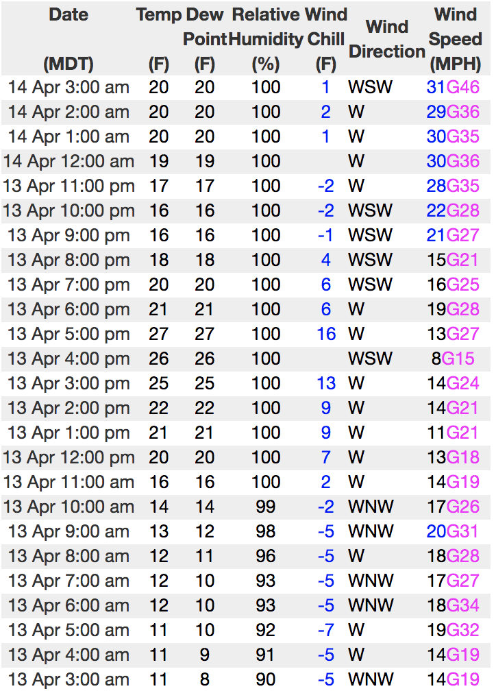 Looks like some network issues, so... no updated winds from the Uinta's. Above is representative wind data from our nearby neighbors in the Wasatch.