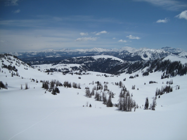 April showers bring... spring powder! Last nights storm quickly blossomed over the Uinta zone, instantly dumping nearly a foot of fresh, medium density snow across the high country. Westerly winds peaked into the 50's right around midnight, but since subsided somewhat and currently blow in the 20's and 30's along the high peaks. Under mostly cloudy skies, snow continues stacking up and current temperatures register in the teens and low 20's. Riding and turning conditions are about as good as they get and you can expect epic, in-yer-face, over-the-hood, April conditions.