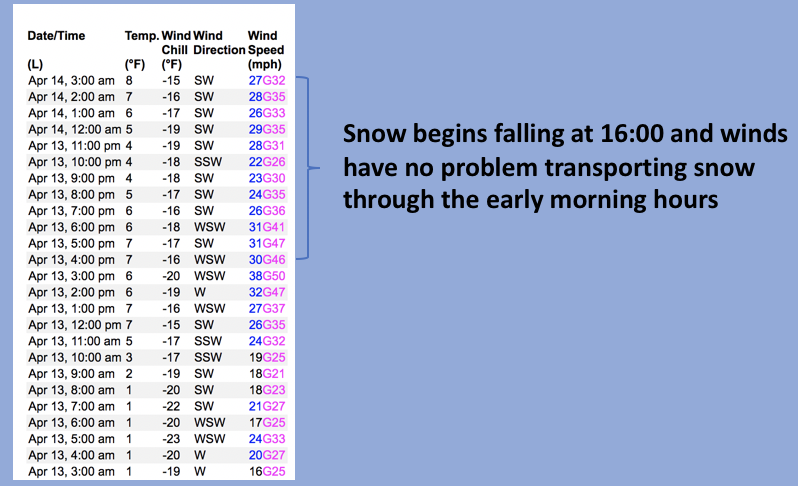 A 24 hour data dump from Windy Peak (10,661') clearly shows no shortage of wind.