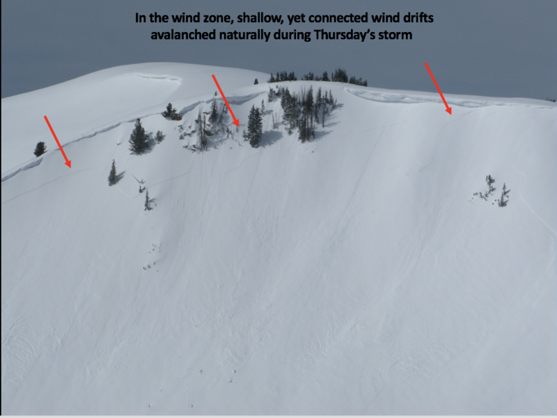 Not particularly widespread, but steep, wind drifted slopes in the wind zone did experience a natural avalanche cycle during Thursday's storm.