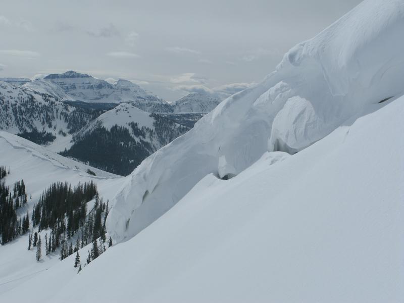 Cornices are quite large these days and may break back further than you expect. You definitely want to give these large boxcar pieces of snow a wide berth.