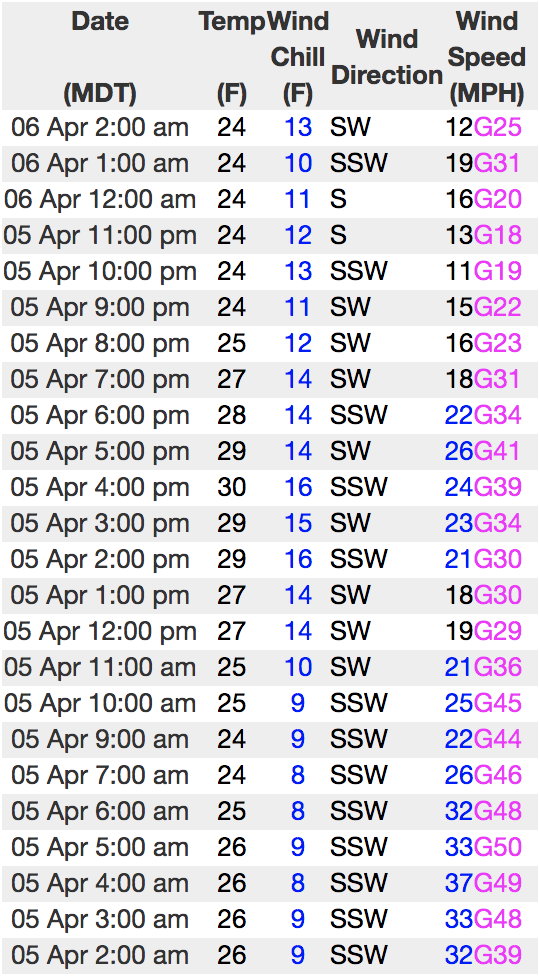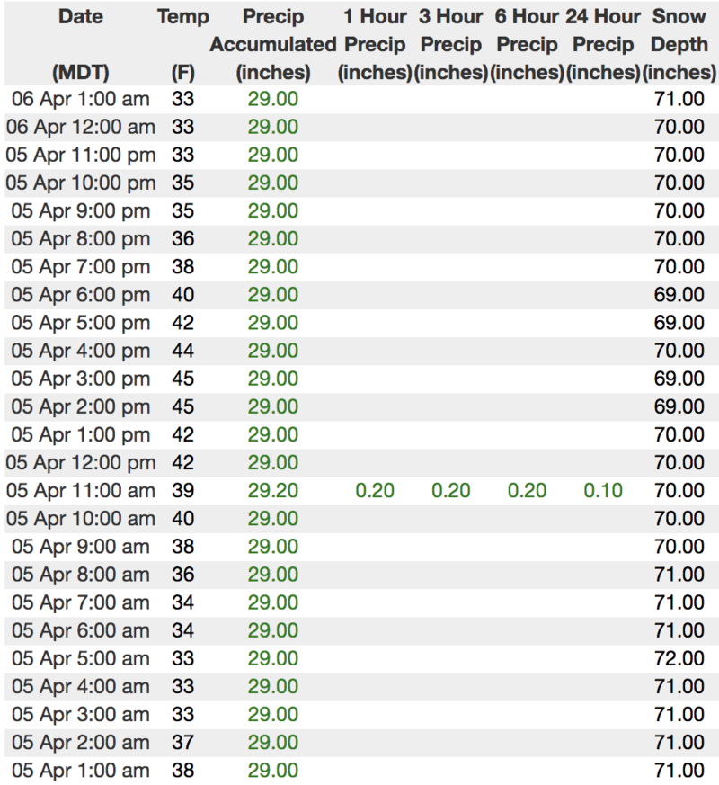 Above is hourly snow data from Chalk Creek (9,169')