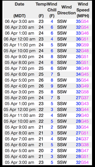 Southwest winds began blowing in the 30's early Sunday and continued ramping up throughout the day, blowing 40-60 mph along the high peaks. Warm temperatures and nuking winds have taken their toll on riding and turning conditions and soft snow is in limited supply. However, supportable snow surfaces transform into creamy corn-like goodness on sunny slopes as the day progresses.
