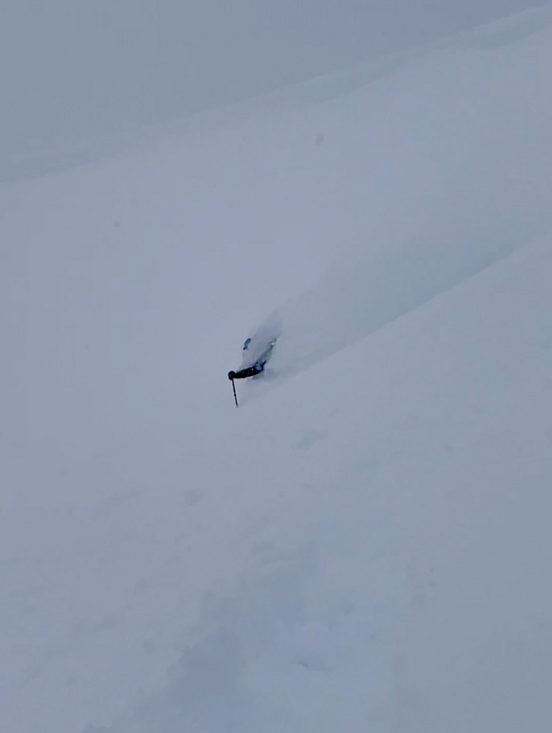 Avy-savvy-snow-pro Bo Torrey taps into an aquatic animal spirit, channeling his inner Porpoise and coming up for air in between turns during yesterday's ridiculously deep day.