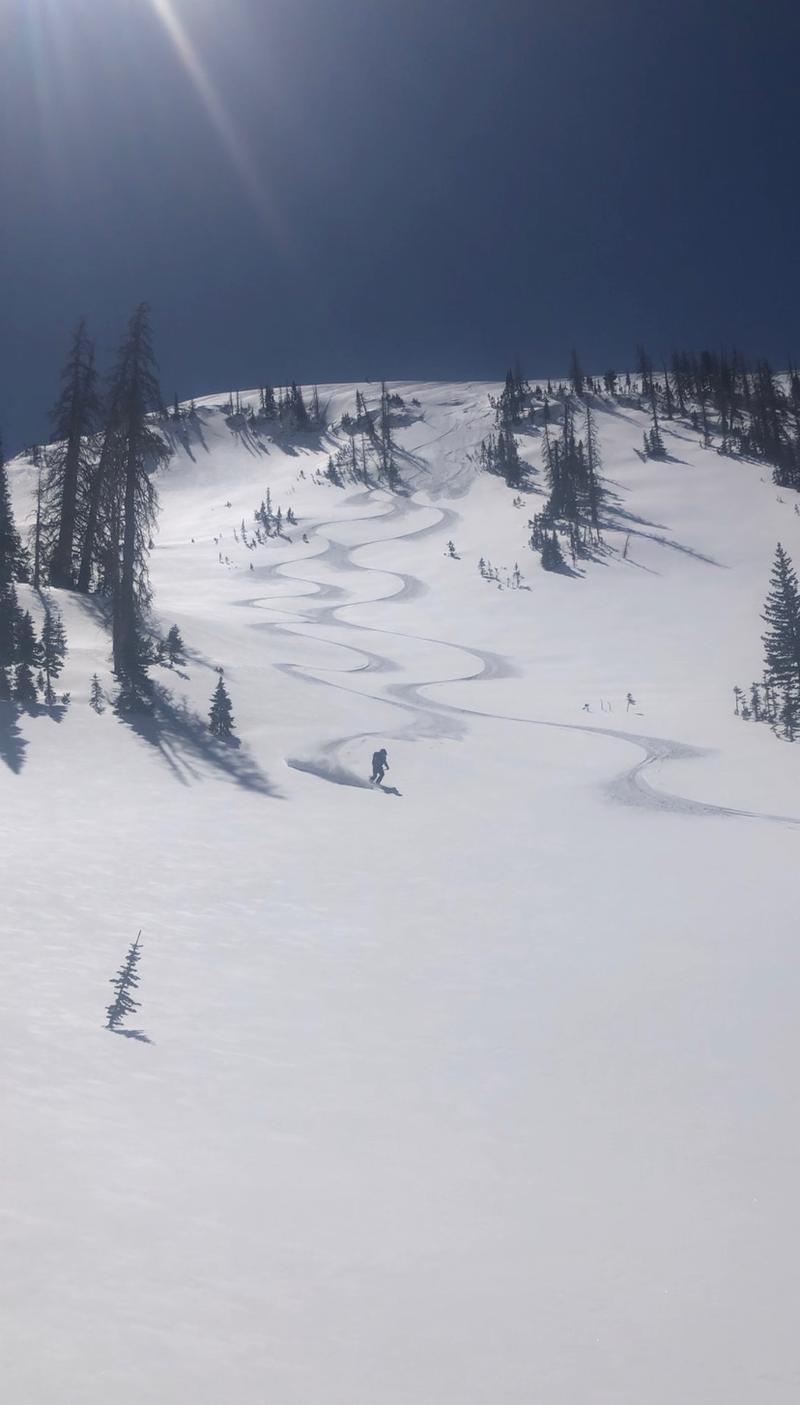 MODERATE avalanche danger is found on the leeward side of upper elevation ridges in the wind zone where a rogue wind drift or two may still react to our additional weight and human triggered avalanches are POSSIBLE. While not particularly widespread and trending on the pockety side, today's avalanches may still catch you off guard. So... if you're getting after it and onto sustained steep slopes or tagging big, committing, complex terrain, take a minute and think about the consequences of triggering even a small avalanche that can knock you off your feet, board, or sled and throw a curve ball at a stunning day. Wind sheltered slopes offer generally LOW avalanche danger and that means human triggered avalanches are UNLIKELY.