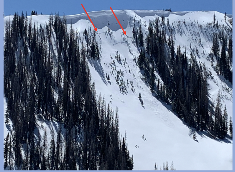 The image above is the only recent avalanche activity reported on a steep, wind drifted, north facing slope in upper Moffit Basin