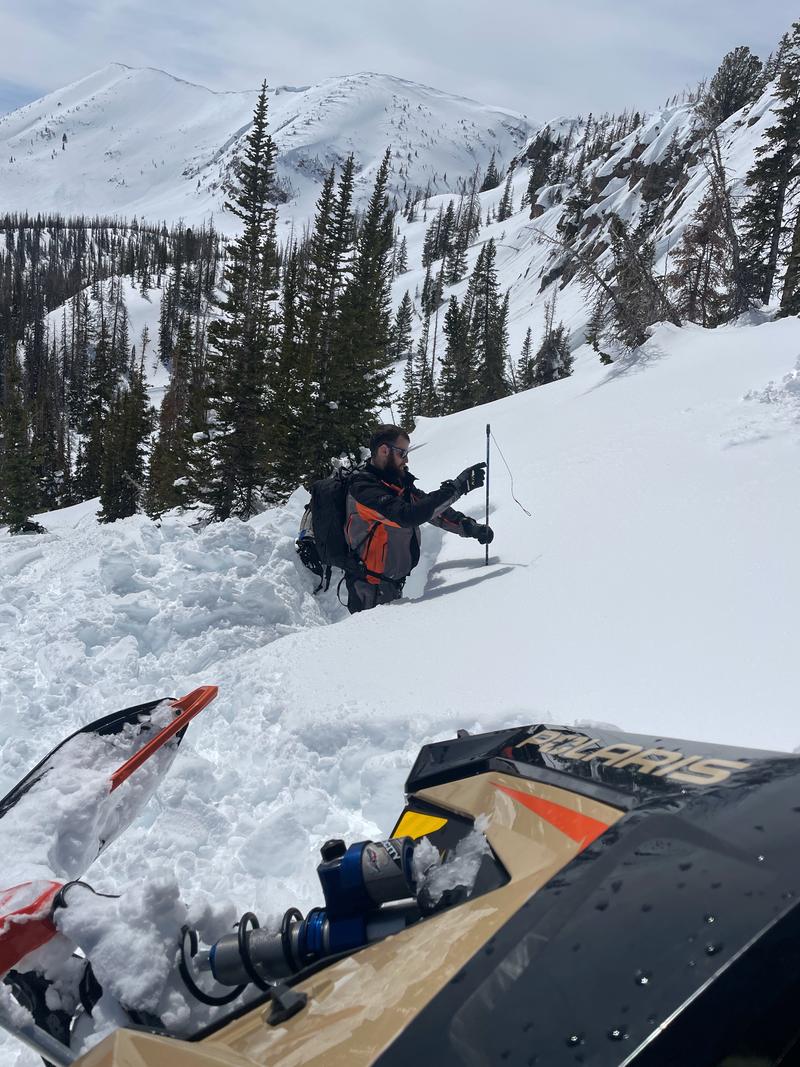 Marks avalanche probe gets gobbled up by a thick, phat, deep snowpack in Gardner Fork yesterday.