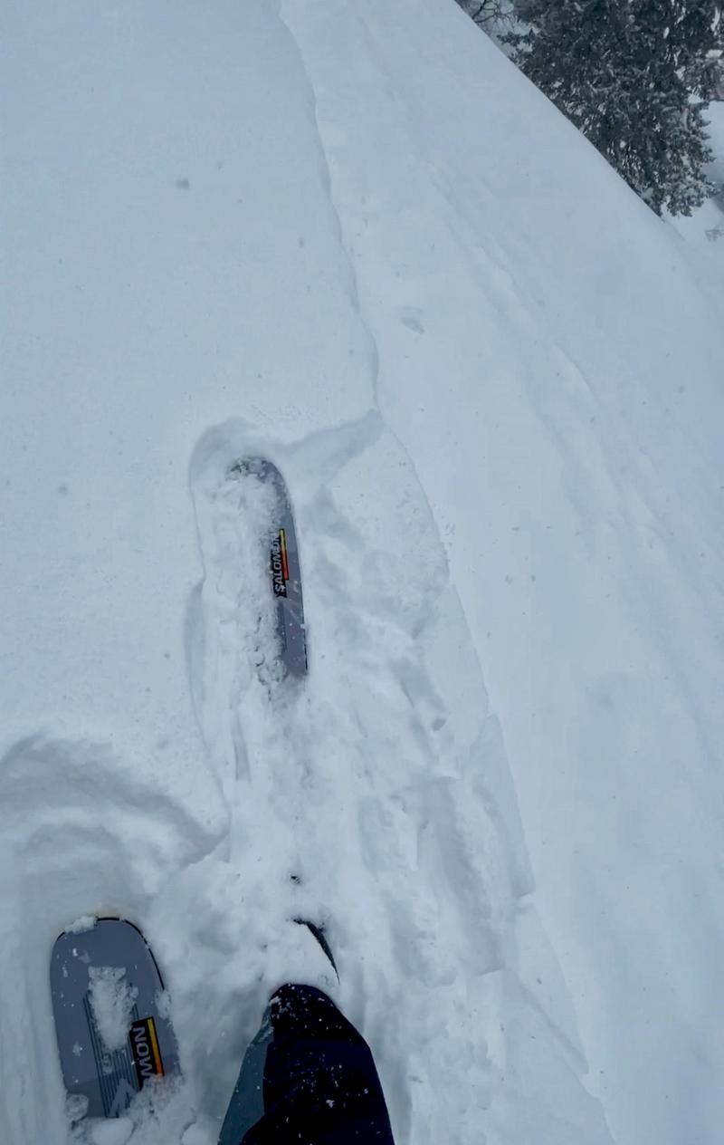 Somewhere under 7000', air temps were above freezing until about the middle of the day. These above freezing temps helped the new snow bond to the old snow quite well.